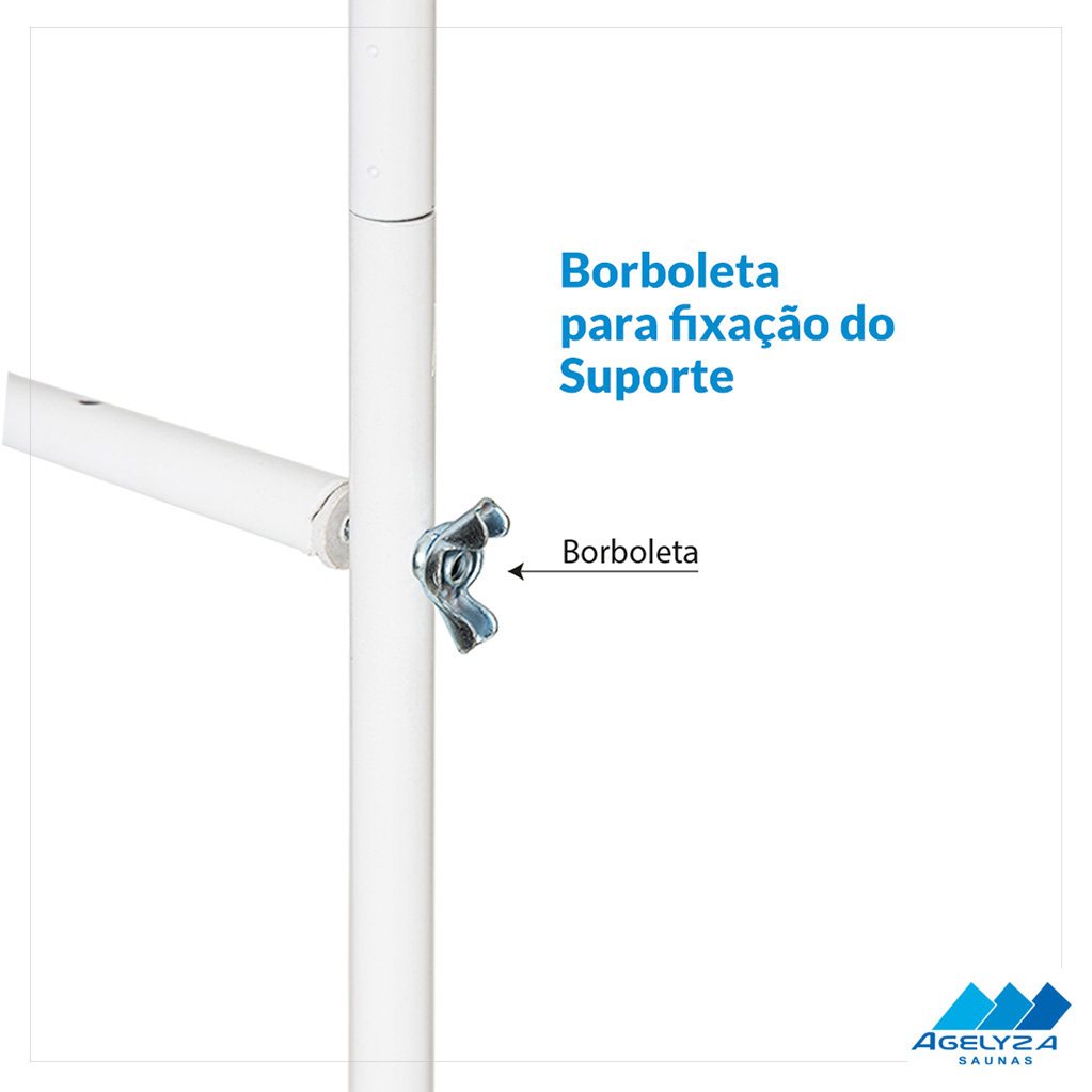 O Suporte para Sauna Móvel possui instalação fácil e prática, além de ocupar um pequeno espaço, podendo ser instalada no banheiro de sua residência ou em outro lugar de sua preferência. A estrutura é composta por alumínio com pintura epóxi e feita com todo o cuidado para a sua segurança.